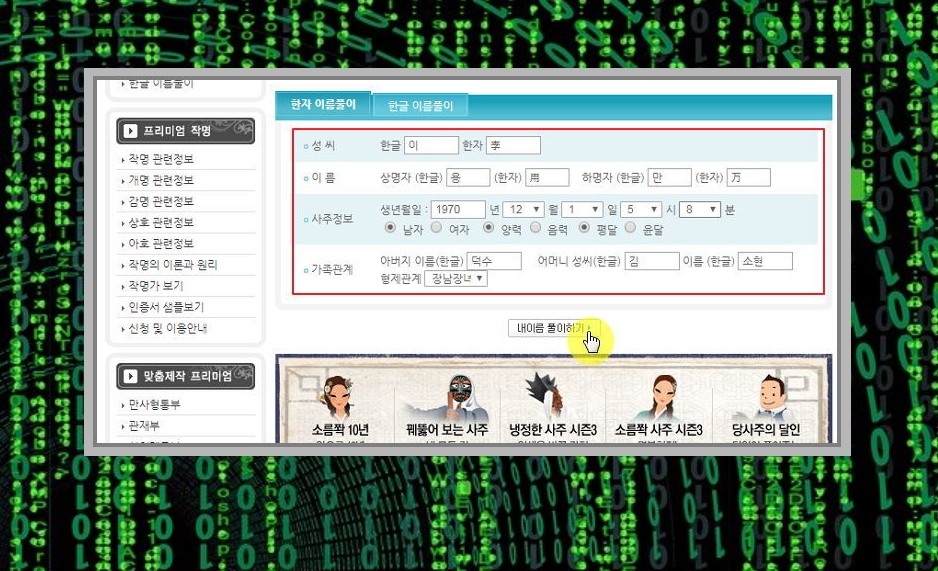 이름풀이 무료 서비스 이용하기