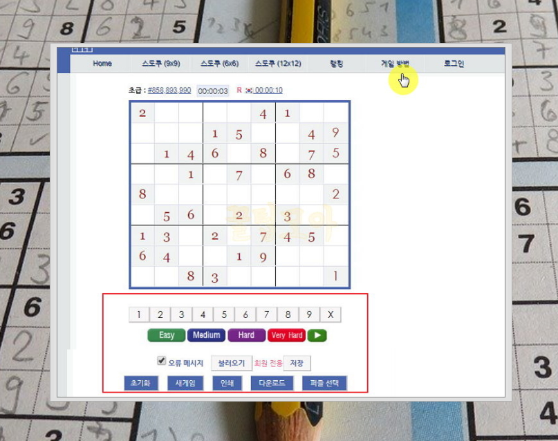 과거와 달리 요즘에는 인터넷 문제모음 사이트를 통해 스도쿠를 무료로 즐길 수 있습니다. 그것도 다양하게 말이죠. 그럼 스도쿠코리아를 포함한 마음껏 문제를 풀어볼 수 있는 곳에 대해 알려드릴게요. 꽤 많은 문제가 있어서 양껏 푸는 것이 가능해요.
