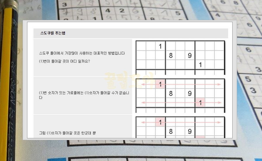 1) 유용하게 사용할 수 있는 스도쿠 사이트 2가지를 소개 해드리겠습니다. 첫 번째는 스도쿠코리아 인데요. 사이트가 깔끔하고, 회원가입을 하지 않아도 이용할 수 있어서 정말 편리합니다. 문제도 많고요.