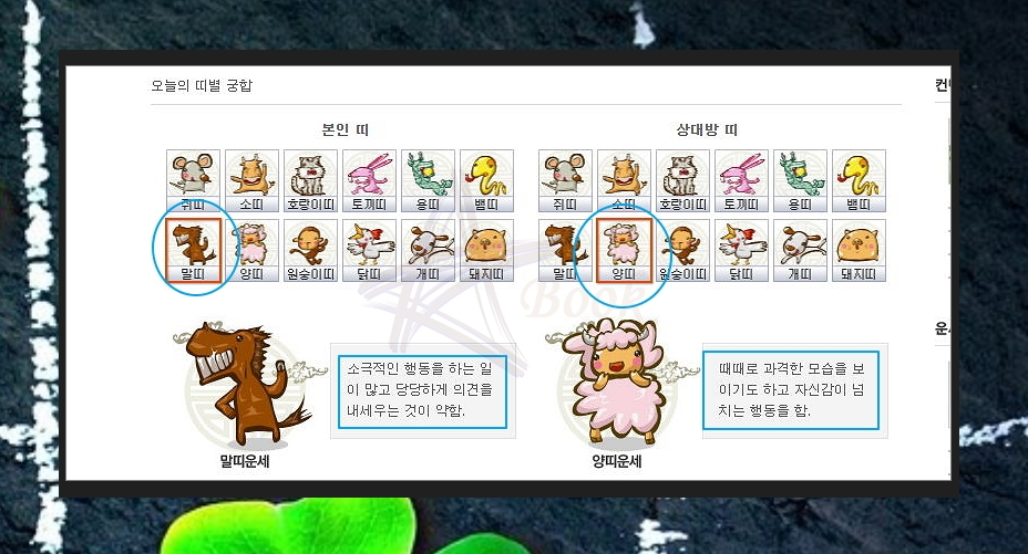 네이트에서는 띠로보는 오늘의 궁합을 볼 수도 있는데요. 좋아하는 사람이 있고, 상대방의 띠를 알고 있다면 가끔을 궁합을 보는 것을 추천 드려요. 본인과 상대의 성격이나 성향을 알 수 있고, 오늘 상대와 만남을 가져도 좋은지 알 수 있거든요.