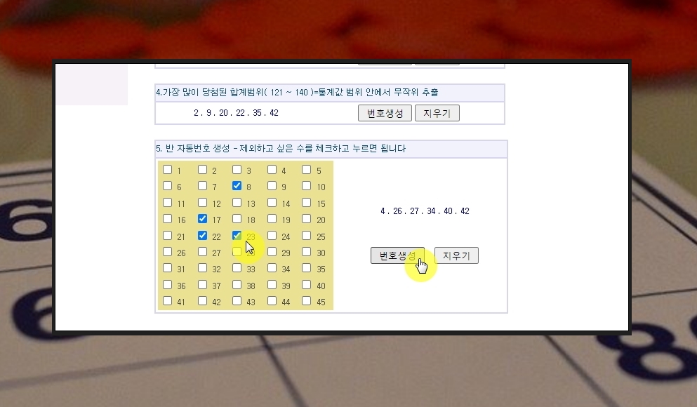 특정 번호를 제외하는 기능도 갖추고 있습니다. 이런 식으로 로또에 관련된 통계 자료 열람과 활용을 하실 수 있습니다. 많은 도움이 되길 바랍니다.