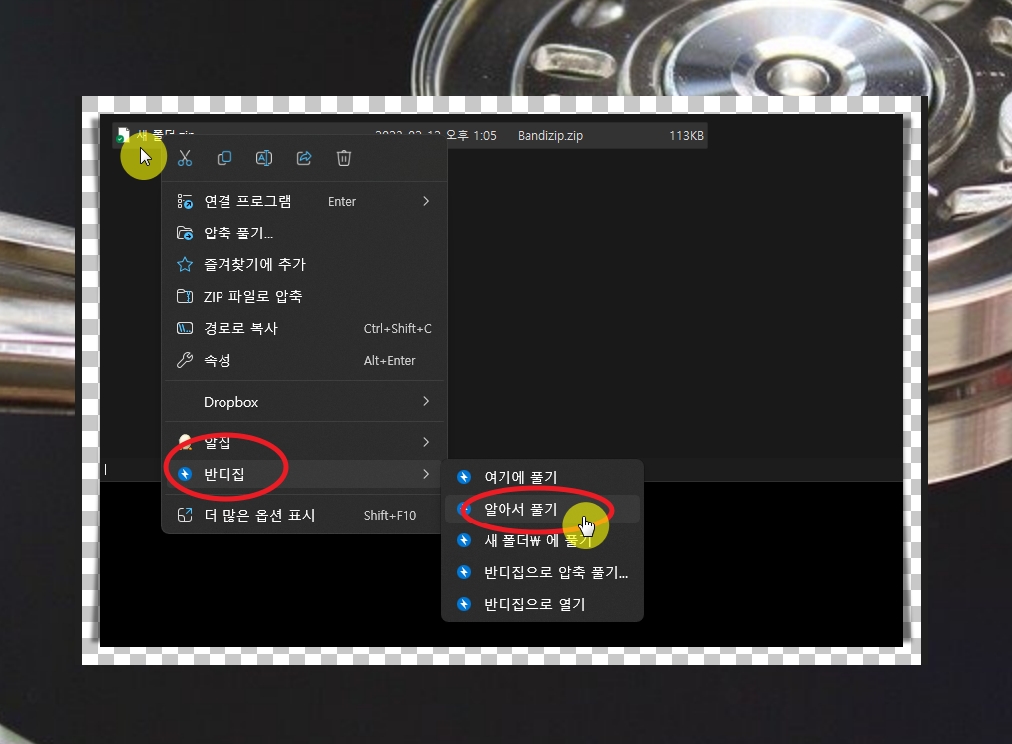 가볍게 사용할 수 있는 반디집을 가지고 zip파일 만들기를 해볼게요.