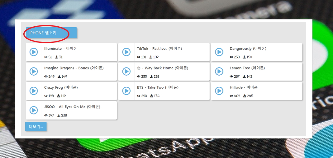 3. 아이폰 벨소리를 따로 추천해 주는데요. 안드로이드 운영체제를 사용하는 스마트폰과 아이폰이 서로 다른 오디오 포맷을 다루기 때문에 구분이 되어 있는 것 같습니다. 아이폰을 사용하시는 분들은 해당 카테고리 위주로 사용하시기 바랍니다.