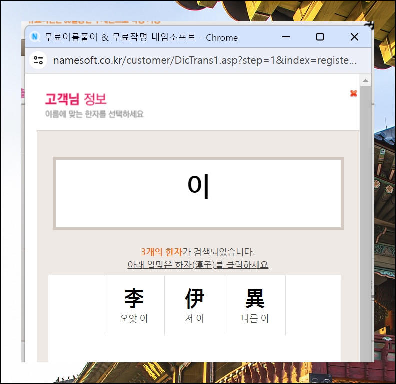 | 무료 이름 한자 풀이 당신의 운명 궁합까지 한번에 알아보기 (0) | 2024.09.07 |