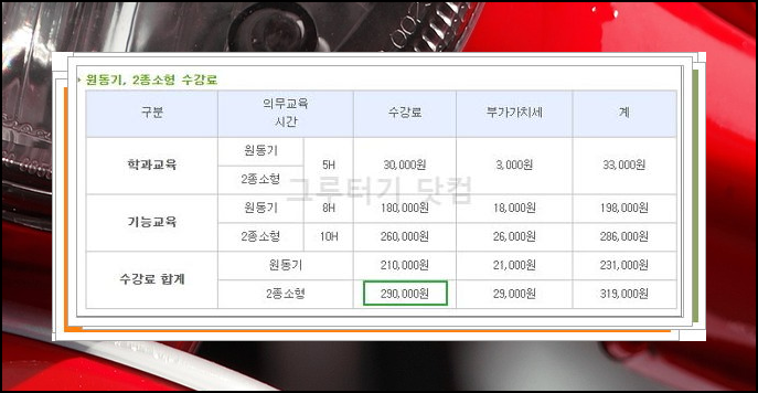 참고로 2종소형 학원비 외에 드는 비용을 일반적인 가격은 보험료 2천원, 검정료 3.3만원, 인지대 5천원정도 한답니다.