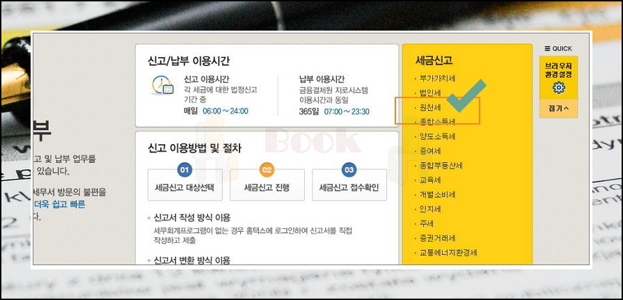 해당 페이지에서는 다양한 세금에 대한 민원을 처리하는 곳인데요. 원천세를 클릭해 보세요. 그럼 신고서 발급은 물론, 내역조회도 가능합니다.