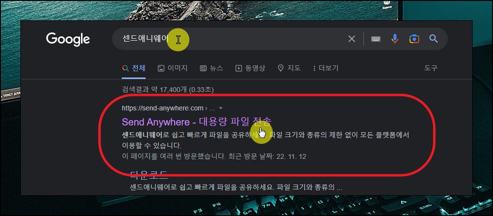 컴퓨터에서는 프로그램을 설치할 필요는 없습니다. 그냥 센드애니웨어 사이트에 접속해서 숫자키를 입력해주면 됩니다.