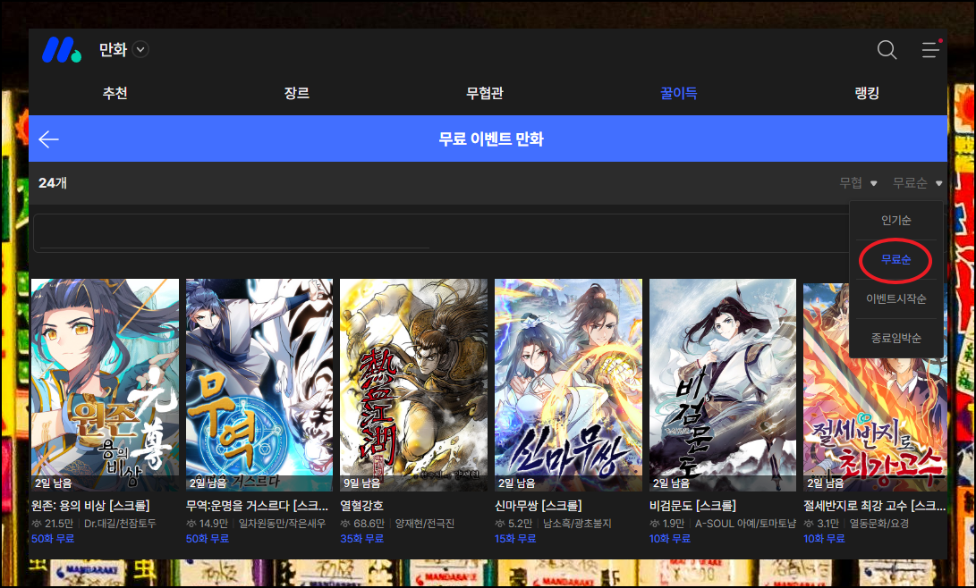 최근 살펴보니 표사전설, 보보경천, 용투야를 무료로 만나볼 수 있었는데요. 여기에 더불어 다른 유명 작가들의 작품도 함께 즐길 수 있었습니다. 그럼 어떻게 이용하는지 알려드릴게요.