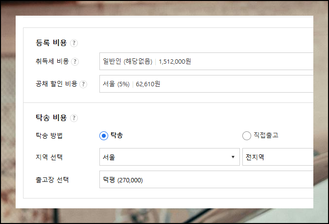 마지막으로 판매조건, 취득세, 공채, 탁송료 항목을 선택해주세요. 화면 우측 견적서에서 취득세, 공채 비용, 부대 비용, 총 구매 비용을 상세히 확인할 수 있습니다. 차량 가격표 외에도 약간의 추가 비용이 발생한다는 점을 고려하면 적절한 예산 계획을 세울 수 있어요.
