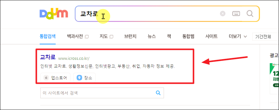 ▲ 교차로 공식 홈페이지에 접속했습니다.