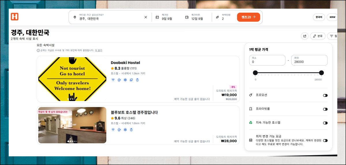이 사이트의 진짜 장점은 세밀한 필터 기능에 있어요. 가격대, 후기 점수, 숙소 유형, 편의시설, 결제 방식까지 다양한 조건으로 게스트 하우스에 대한 검색을 세분화할 수 있습니다. 다른 플랫폼보다 상세하고 직관적이라서 자신의 여행 스타일에 딱 맞는 숙소를 찾기에 최적의 도구에요.