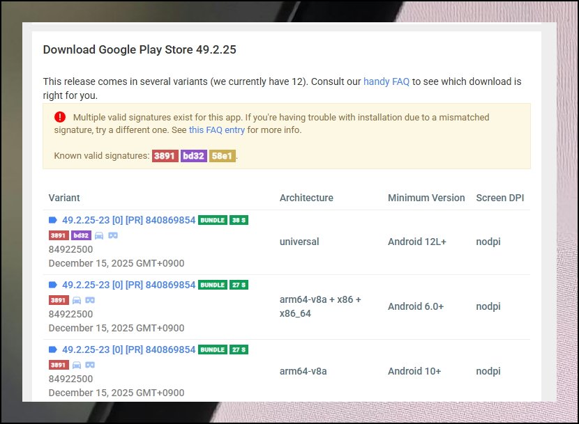 다양한 버전 가운데 원하는 것을 클릭하면 추가적인 기술 정보가 나타나요. 호환 가능 여부도 함께 점검할 수 있습니다. 상세 내용 바로 옆쪽에 다운로드 버튼이 배치되어 있어요. 버튼을 눌러서 구글 스토어 설치 전용 APK를 받으세요. 자신의 단말이나 컴퓨터 저장 공간에 안전하게 보관됩니다.