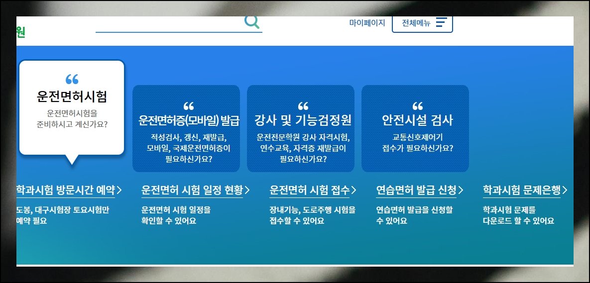 포털 메인 화면에 들어서면 다양한 서비스 목록이 펼쳐집니다. 자동차 운전면허 필기시험 탭을 누르면 방문 예약부터 접수, 연습 인가 요청까지 한 자리에서 처리할 수 있어요. 응시 일정 조회나 접수 현황 파악도 같은 페이지에서 즉시 확인 가능합니다. 문제 파일을 확보하고 싶다면 화면 우측 끝에 위치한 항목을 선택하세요.