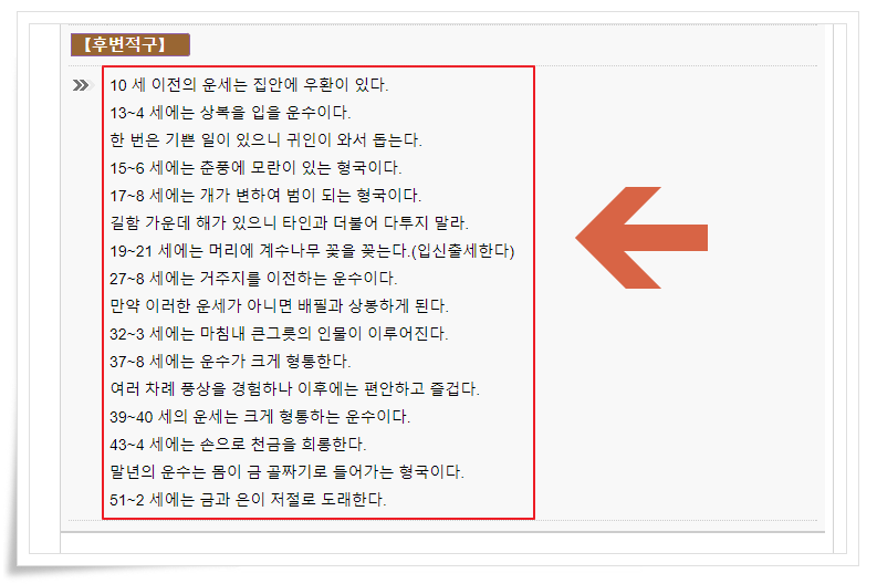 위와 같이 초년부터 말년까지 나이에 따라 상세히 나온 운세서비스를 함께 이용해 보세요.