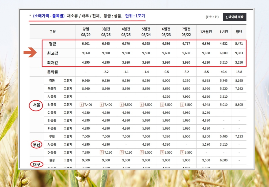 관련 업종에 종사하는 분들은 물론이고, 일반 사람들도 누구나 쉽게 확인할 수 있도록 되어 있습니다. 해당 정보를 통해 현명한 구매 결정을 내리는 데에 도움을 받을 수 있는데요. 농산물 시세 추이를 파악하여 앞으로 어떻게 물가의 흐름을 보여줄지 판단해 보세요.
