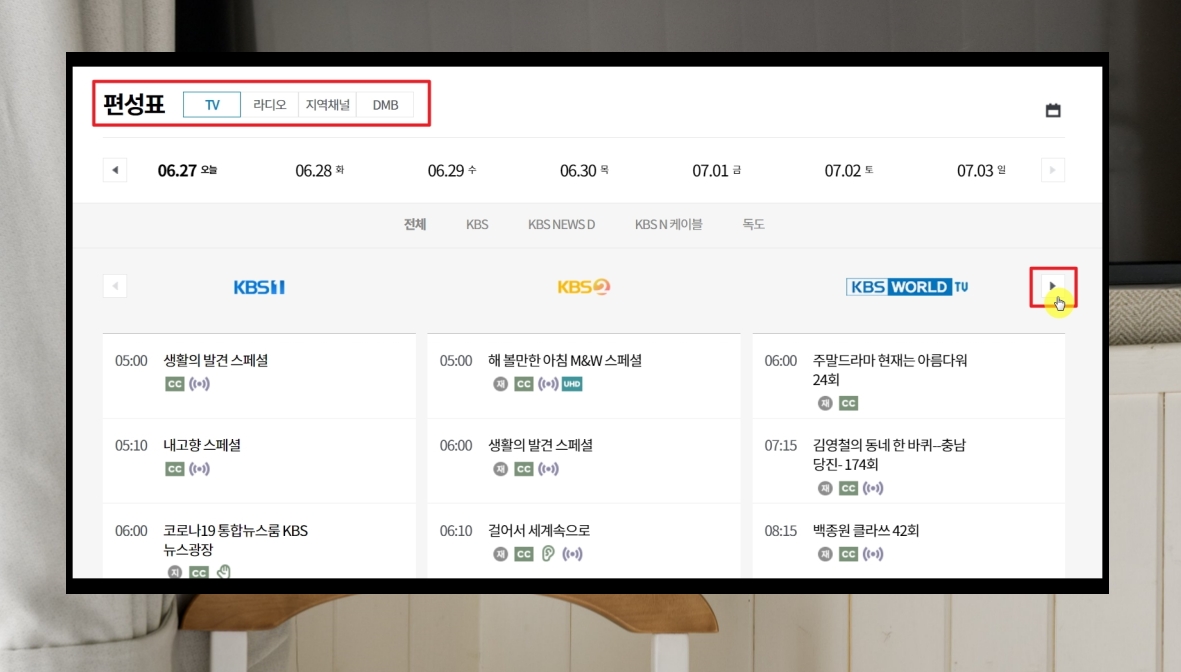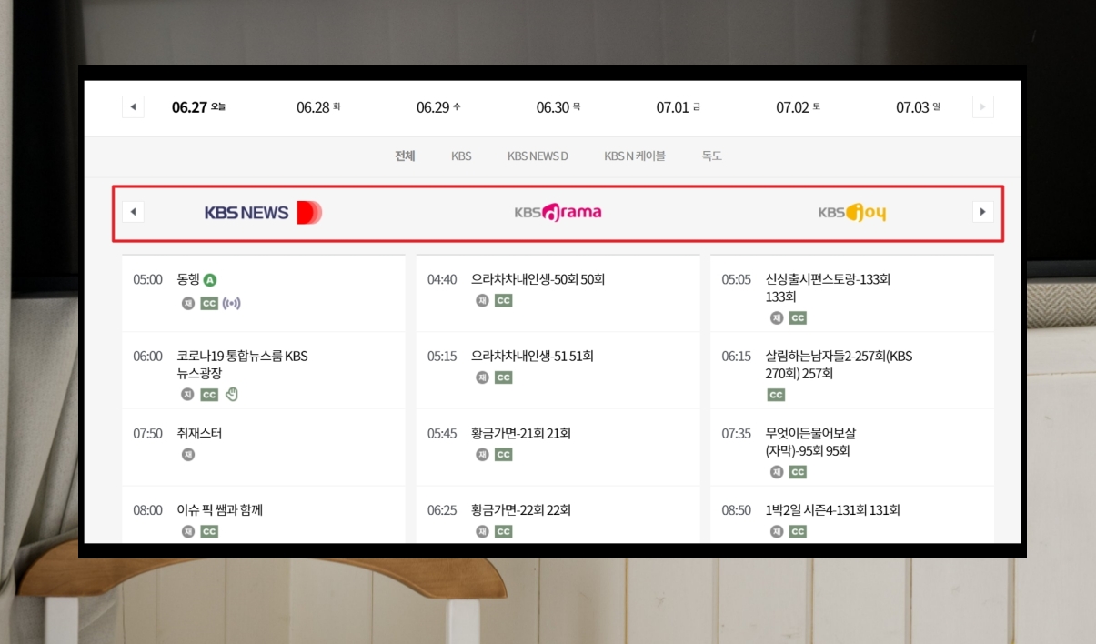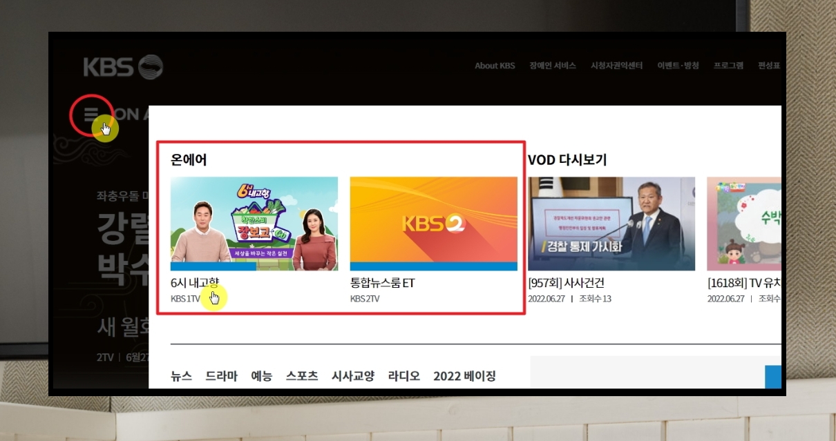 인터넷으로 kbs 실시간 방송보기 진행하기.
