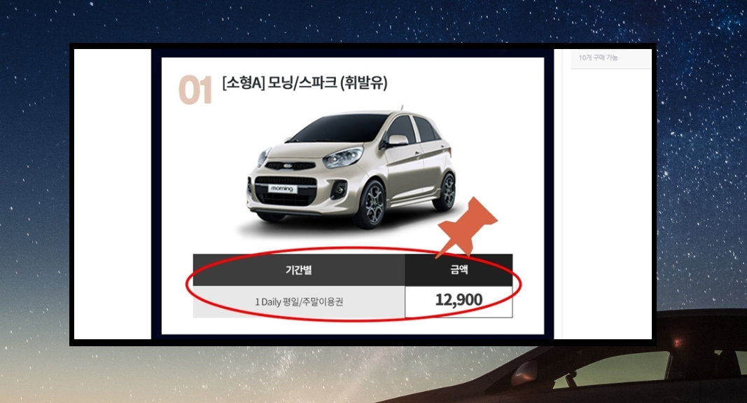 앞서 제가 알려드린 소형차 가격은 두 번째에 있는 상품입니다.